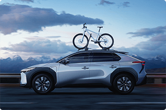 Muskularna i stylowa Toyota bZ4X czuje się doskonale na każdej z dróg, dzięki innowacyjnym rozwiązaniom inspirowanym modelem Land Cruiser. Unikalny projekt nadwozia łączący w sobie nowoczesność aut elektrycznych z dynamiką segmentu SUV przyciąga spojrzenia.