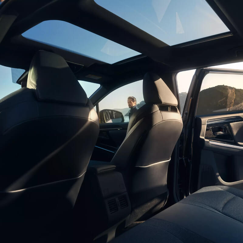 Imponujący panoramiczny dach sprawia, że wnętrze Toyoty bZ4X staje się przestronne i jasne. Elektryczna roleta blokuje światło i chroni przed zbytnim nagrzewaniem się wnętrza.