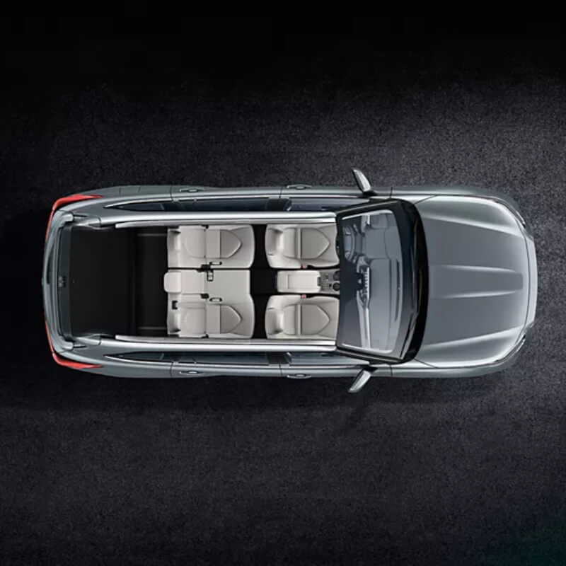 Toyotą Highlander może wygodnie i stylowo podróżować aż siedem osób – nawet w trzecim rzędzie jest dość miejsca dla dwóch dorosłych pasażerów. Wszyscy mają dostęp do licznych schowków oraz gniazd USB umożliwiających podłączenie urządzeń multimedialnych.