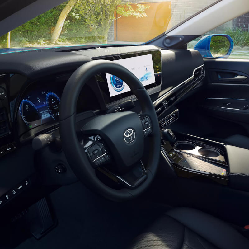 Doświadcz luksusu we wnętrzu Toyoty Mirai. Dzięki niezwykłej ergonomii wszystkie przełączniki są zawsze w zasięgu dłoni, a wygodne fotele zapewniają najwyższy poziom komfortu.