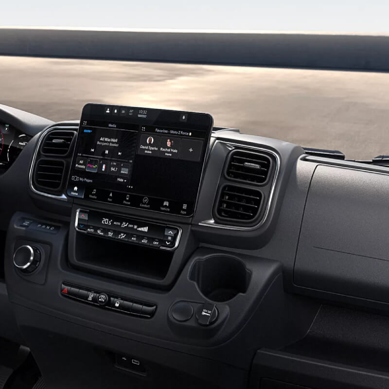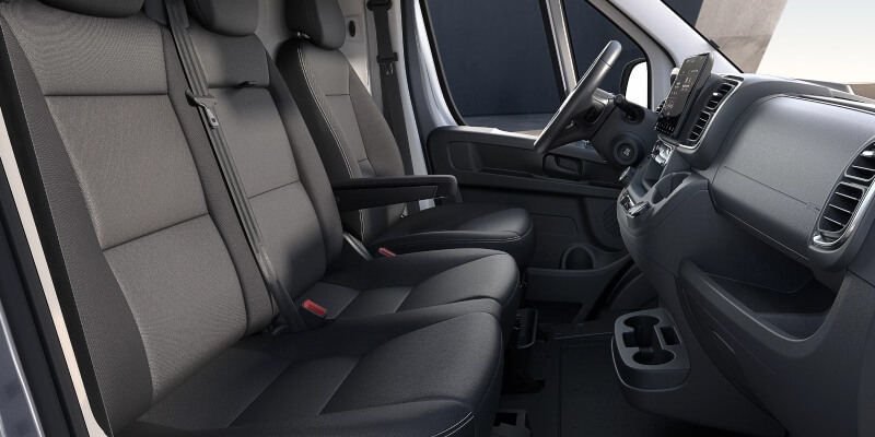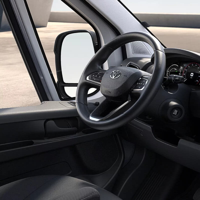 Dzięki ergonomicznie zaprojektowanej kabinie Toyota PROACE Max staje się Twoim mobilnym biurem. Schowaj dokumenty do jednego z licznych schowków, połóż laptopa na stoliku rozkładanym z oparcia kanapy pasażerów i wygodnie prowadź korespondencję mailową.